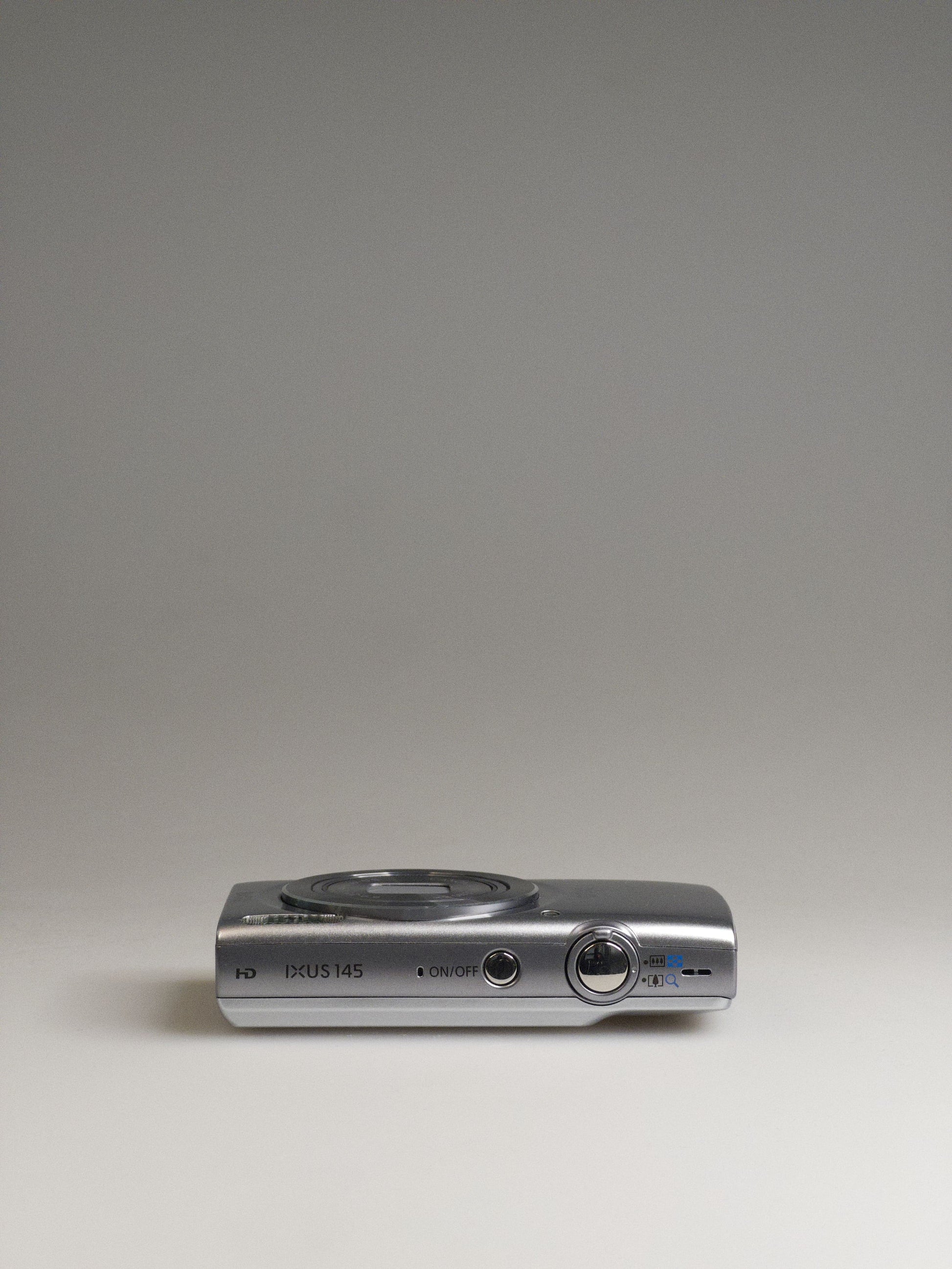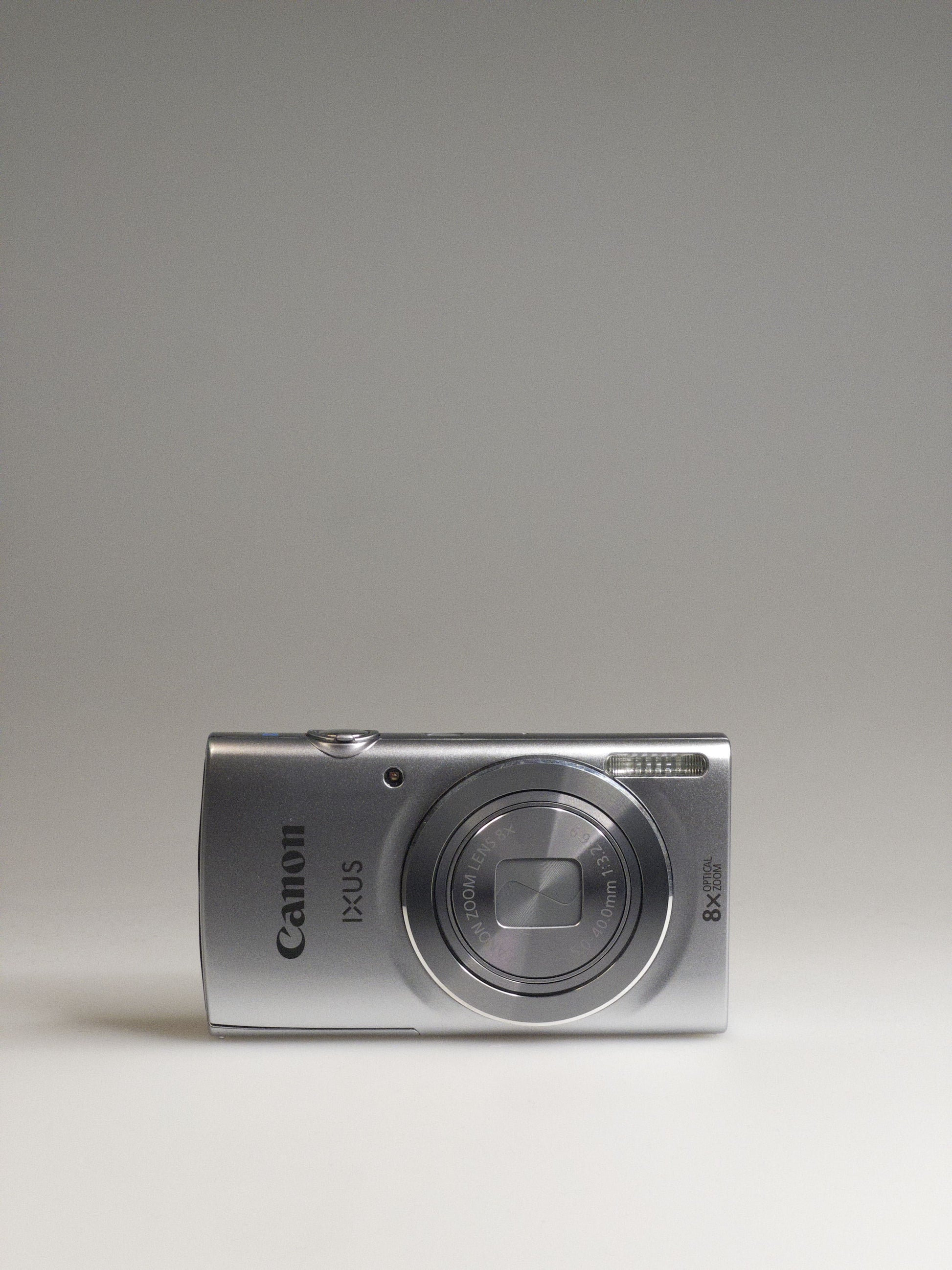 The Canon IXUS 145, also known as the PowerShot ELPH 135 or IXY 120 — a compact point-and-shoot from 2014 that keeps things simple, wrapped in a sleek silver finish that feels quietly timeless.
