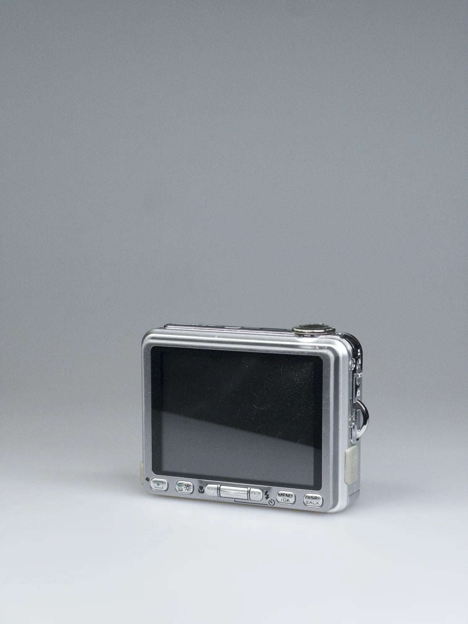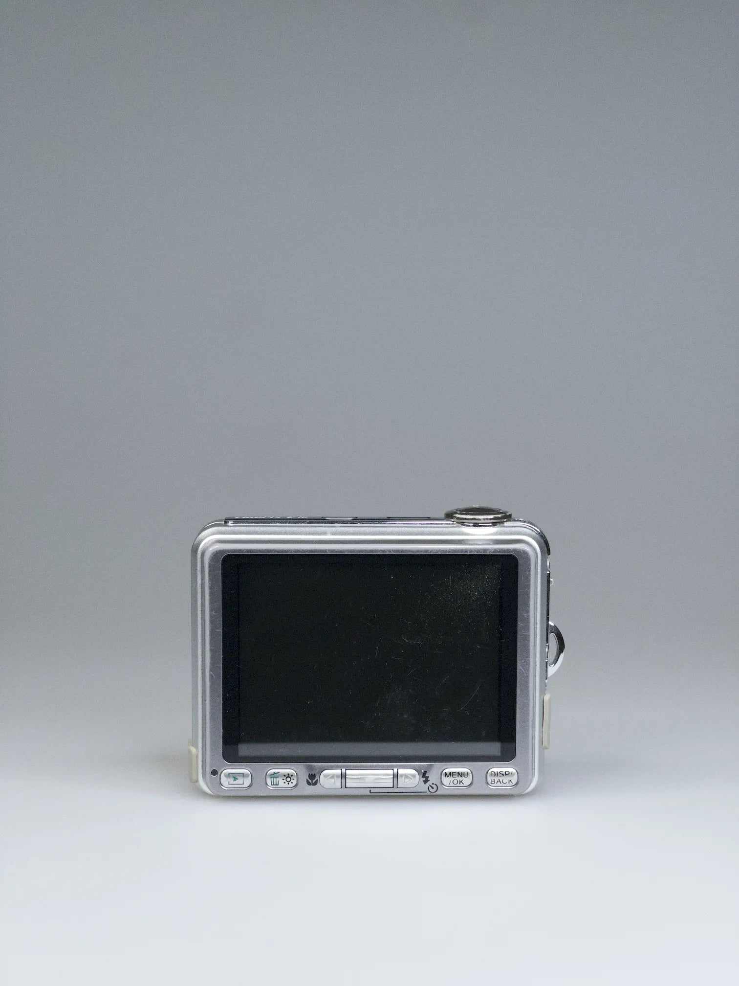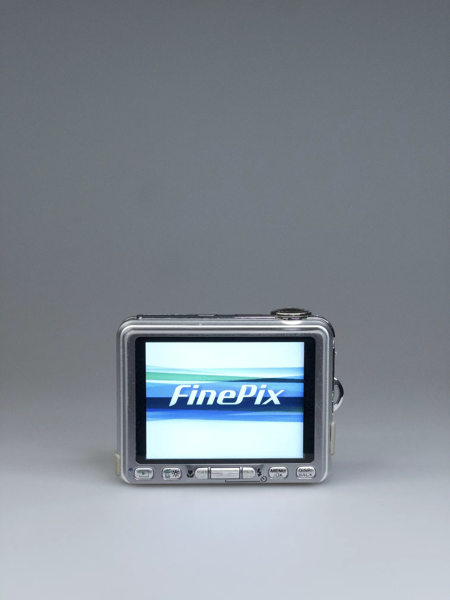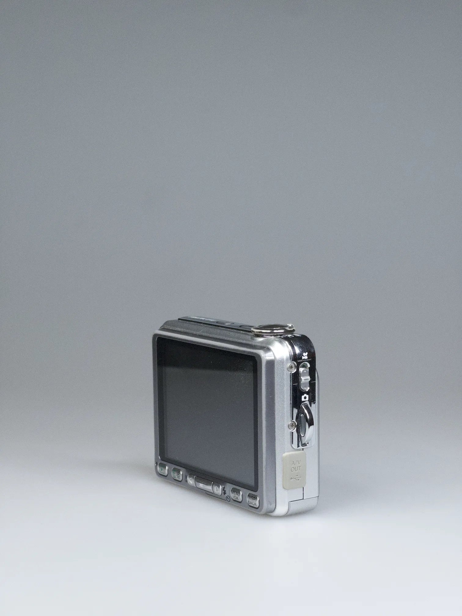 The FinePix V10 came out in early 2006 and Fujifilm described it as a fashion device. That framing undersells it. Under the two-tone metal body is a Super CCD HR sensor with ISO 1600 at full resolution — the same high-sensitivity technology Fujifilm was putting in cameras enthusiasts actually wanted. The 3-inch LCD was enormous for a compact in 2006. The four built-in video games were a bonus nobody asked for and everyone remembers.
