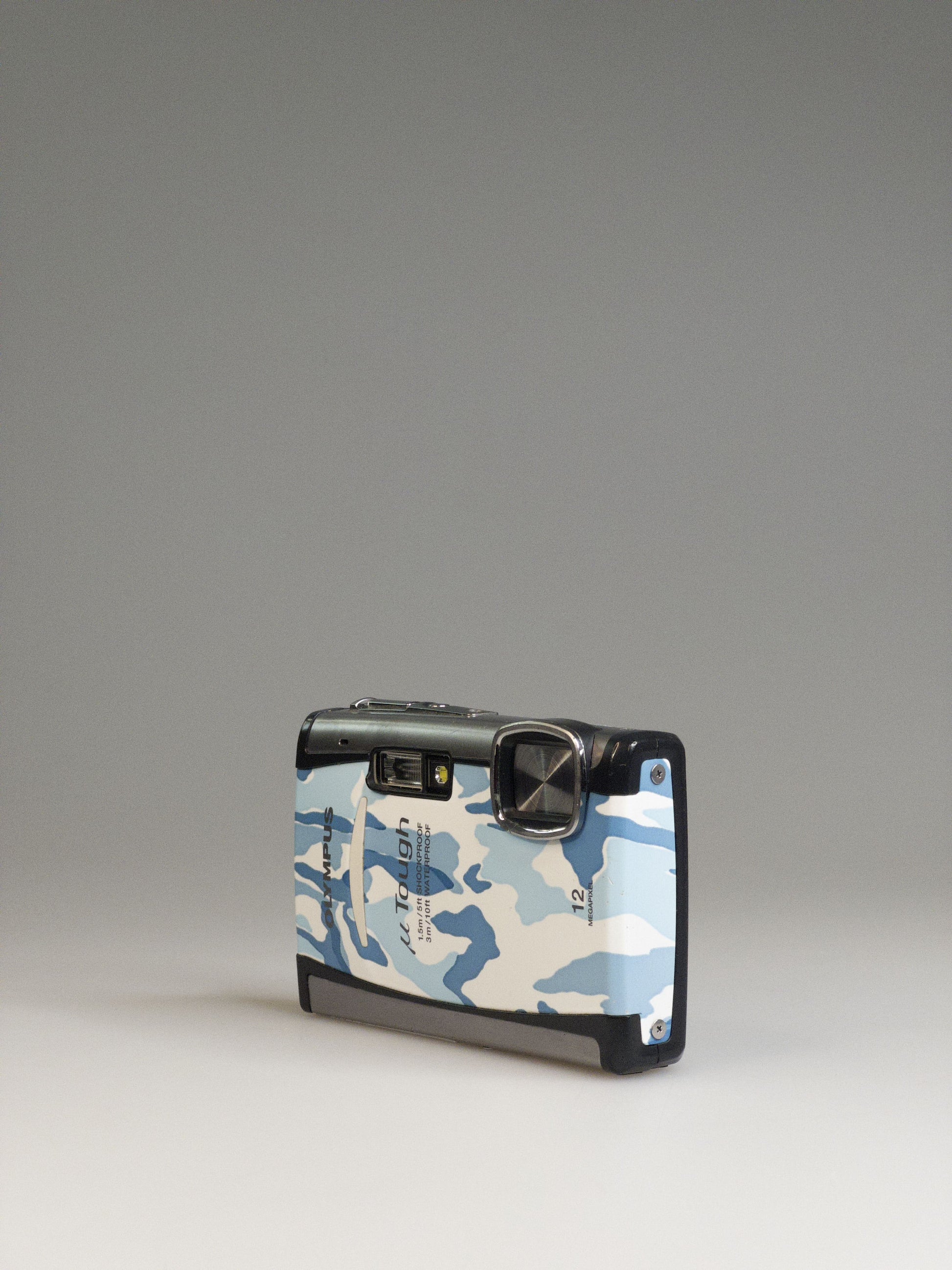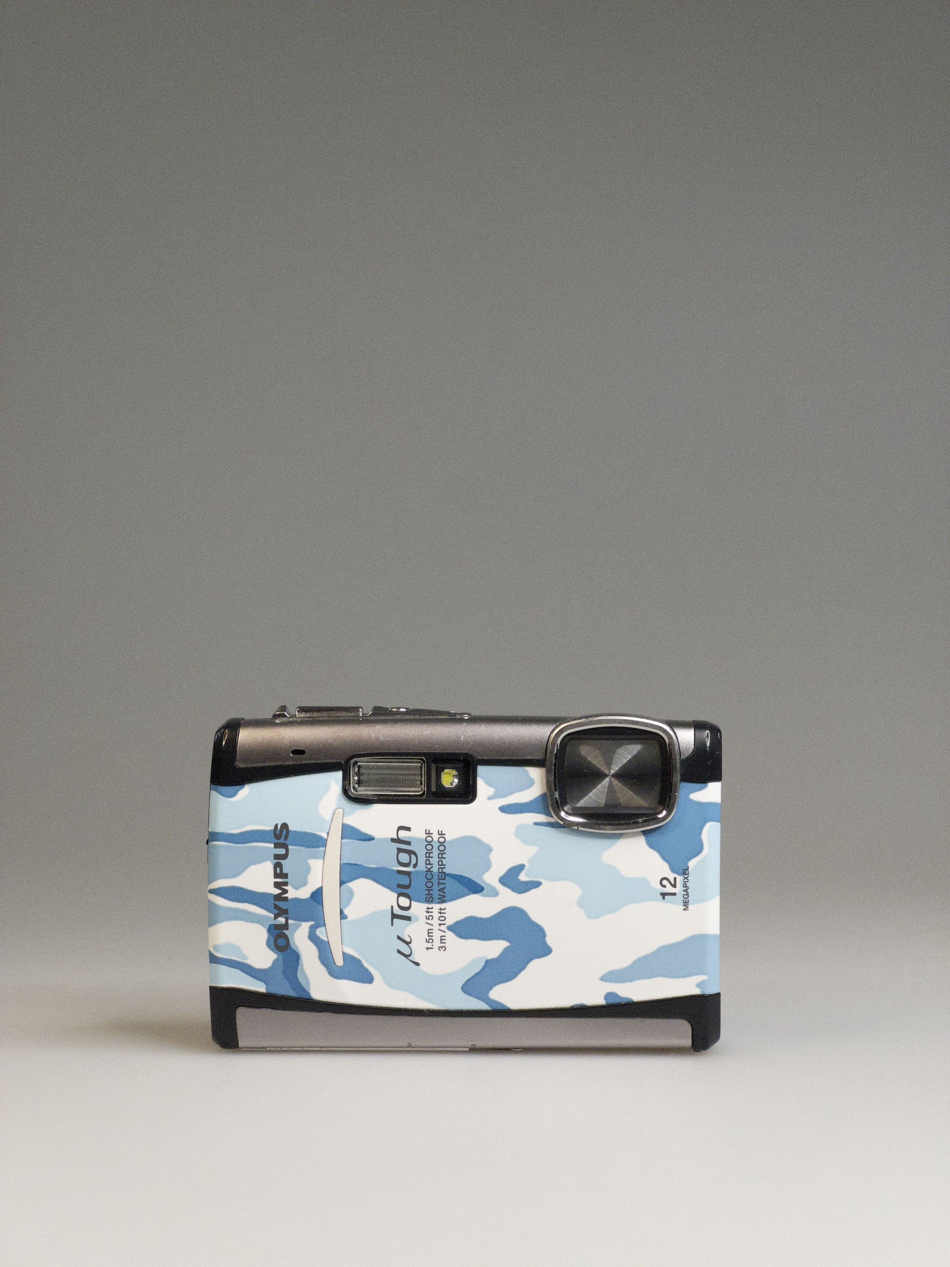 Olympus Mju Tough 6010 in blue camo is a compact adventurer with unmistakable personality. Released in 2009, it’s from that golden era when rugged cameras didn’t just survive the elements — they looked good doing it.