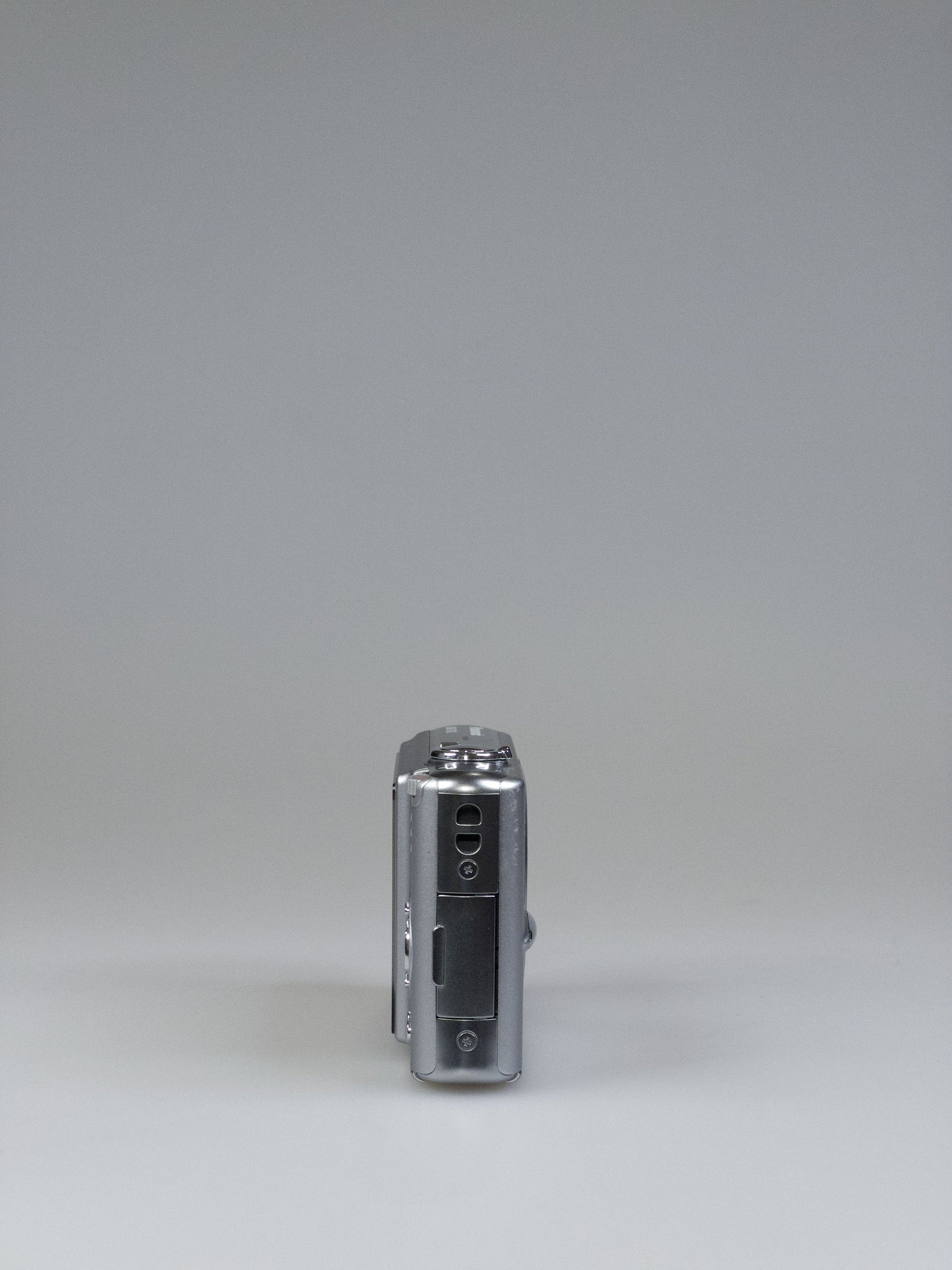 In silver, the FX30 keeps Panasonic's signature minimalist aesthetic with a slim metal body that feels solid despite its diminutive size. The lens sits flush when retracted, maintaining that genuinely pocketable profile, while the control dial mounted partially under the top metal strip gives it a distinctive look—even if it's slightly awkward to use. At 22mm thick, it disappears into a jacket pocket without adding bulk.