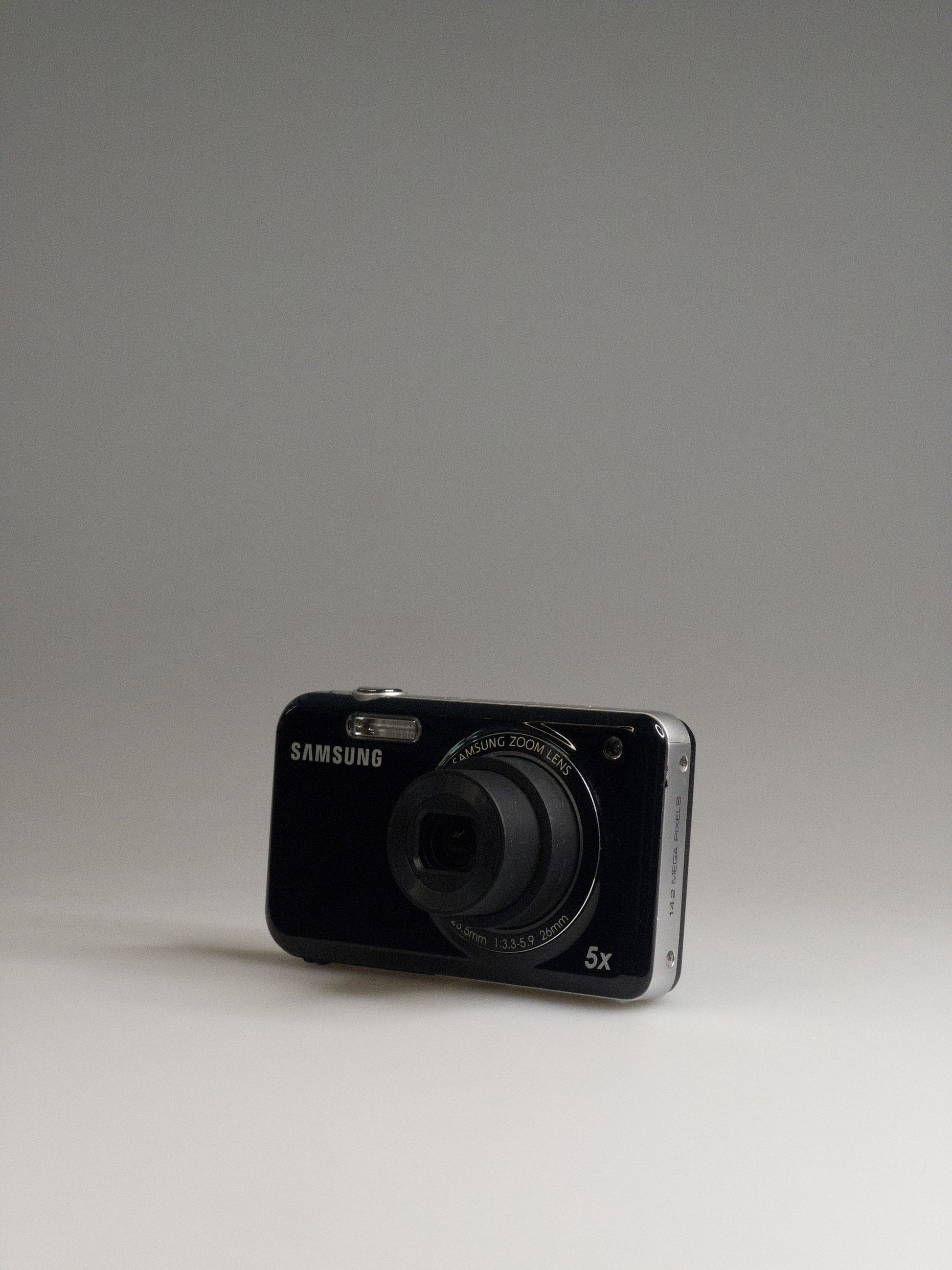 This little Samsung features a 14.2-megapixel CCD sensor with a 5× optical zoom (26–130 mm equivalent) and an aperture range of f/3.3–5.9. The front display measures 1.5 inches, while the main 2.7-inch LCD handles the bulk of shooting. It records 720p HD video and uses digital image stabilization to help steady your shots.