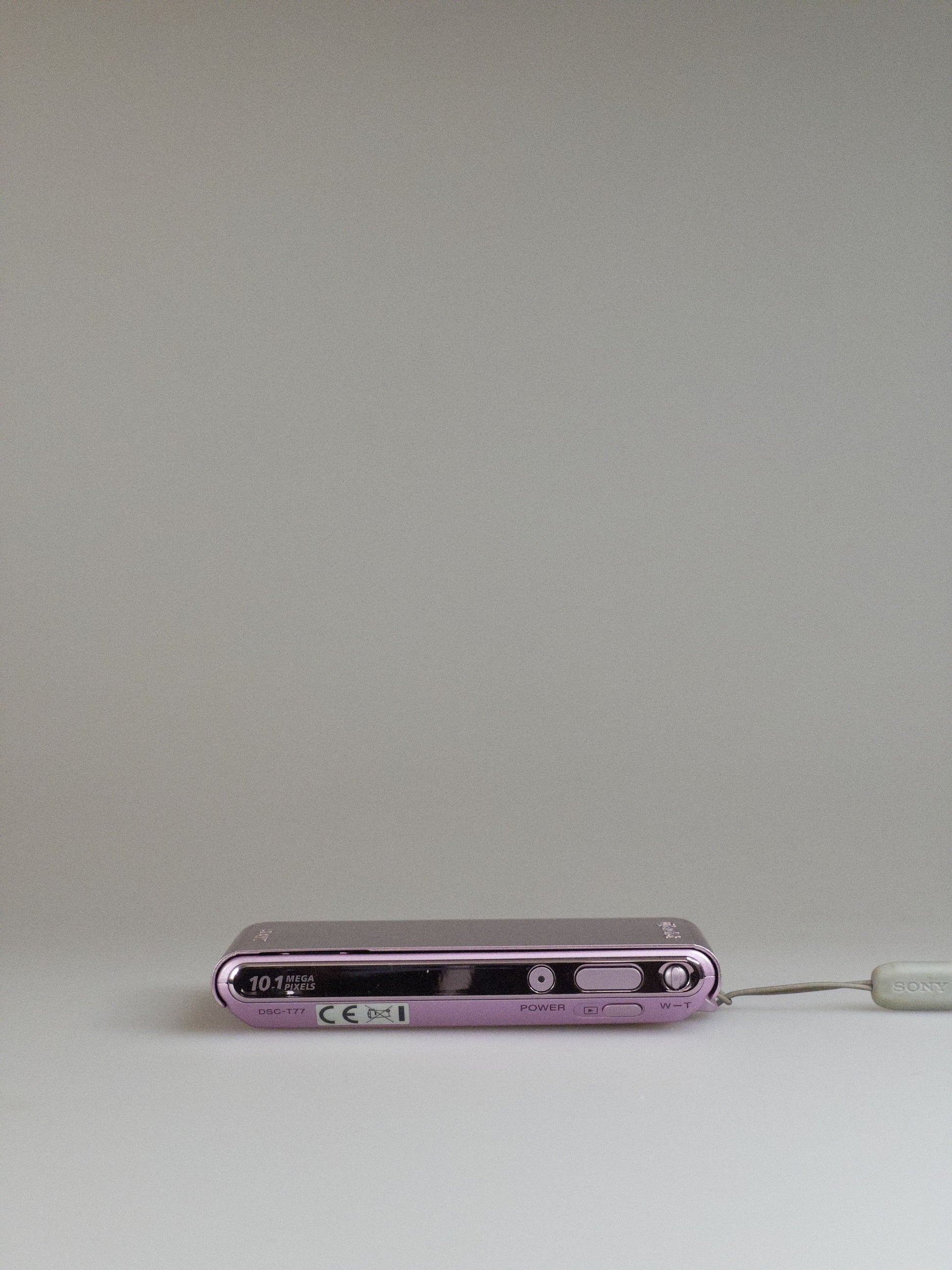 Sony Cyber-shot DSC-T77 in pink is the definition of pocket-sized confidence — a late-2000s design statement wrapped in brushed metal and candy color. Released in 2008, it’s a perfect snapshot of the era when gadgets didn’t just work well — they looked good doing it.