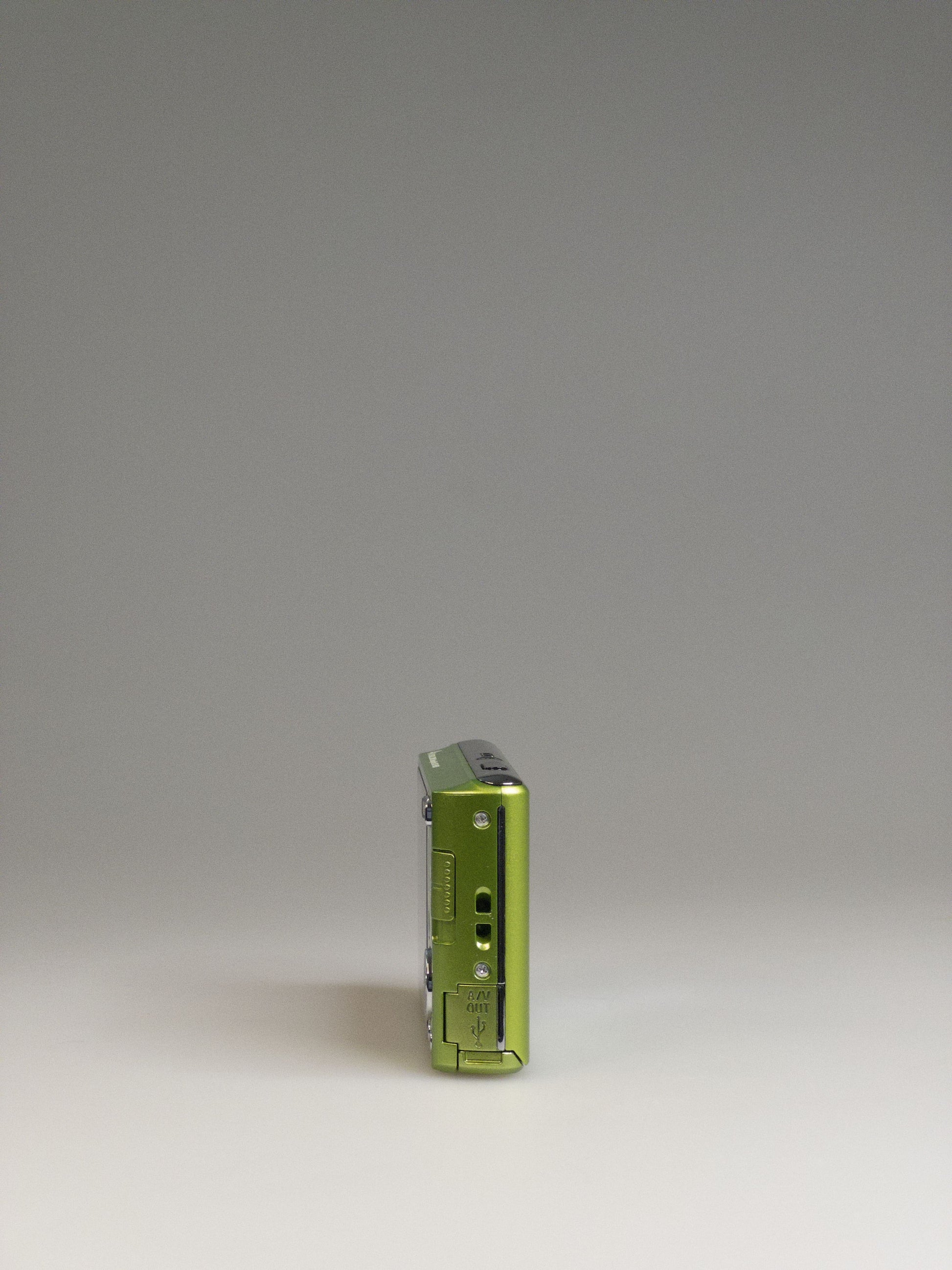 In green, it has that punchy, bright finish that makes it look more like an accessory than a gadget. The slim, lightweight body has smooth edges and a clean faceplate, with the lens sitting neatly in the center. It’s simple but has that unmistakable playful energy common in early 2010s compacts.
