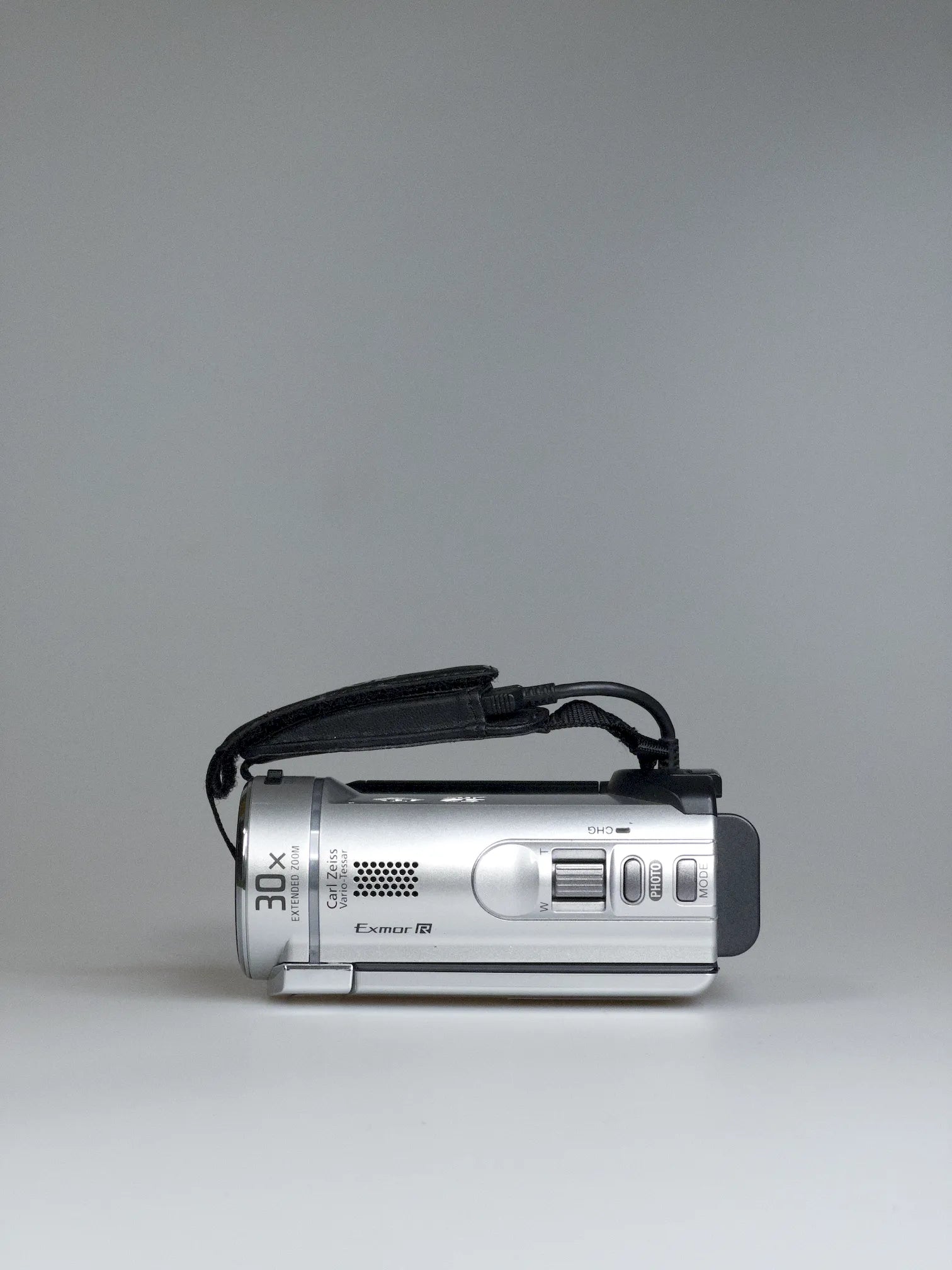 The SR30E follows Sony's traditional Handycam design language: a compact silver body with black accents and a flip-out 2.5-inch touchscreen LCD. The design is delightfully unpretentious, with a pistol-grip layout that feels instantly familiar to anyone who grew up with camcorders. The Carl Zeiss Vario-Tessar lens sits behind a physical lens cap that you actually have to remember to remove before filming. The articulating LCD screen can rotate 180 degrees, perfect for those awkward overhead shots or filming yourself talking to the camera in true early-vlog style.